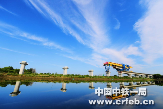 藍(lán)天綠水間的架梁施工現(xiàn)場