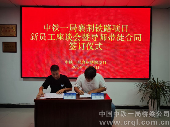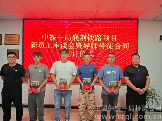 9月9日,中鐵一局襄荊鐵路項(xiàng)目組織召開新員工座談會(huì)暨導(dǎo)師帶徒簽約儀式,項(xiàng)目部和各工區(qū)領(lǐng)導(dǎo)班子、導(dǎo)師以及13位新員工參加。