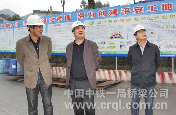 11月12日,中鐵一局集團公司副總經理湯勇、成本部副部長費誠偉一行到渝黔項目檢查指導精細化管理及二次經營工作。橋梁公司總經濟師周啟林陪同檢查。