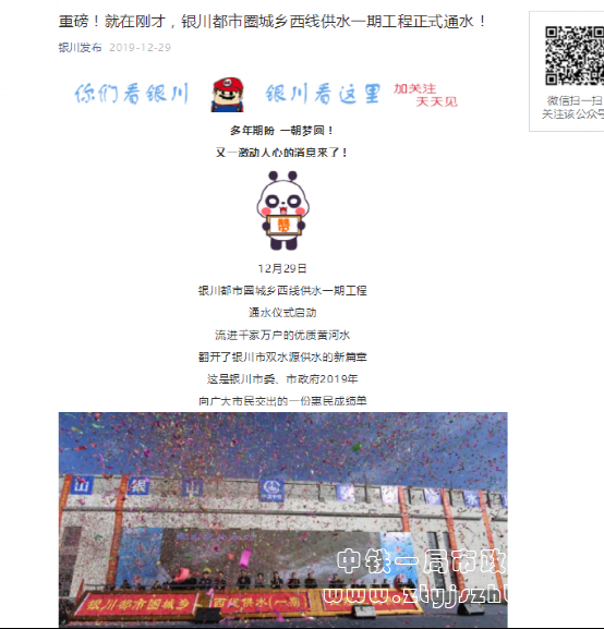銀川發布報道:銀川都市圈城鄉西線供水工程項目通水