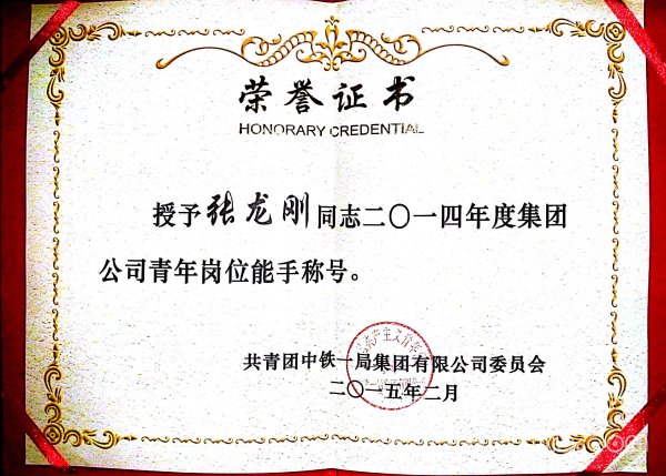 張龍剛榮獲2014年度集團(tuán)公司青年崗位能手稱號(hào)