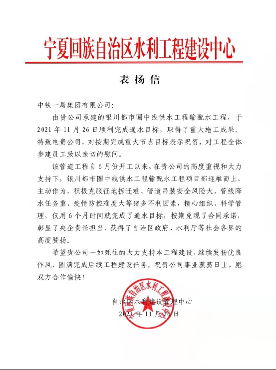 寧夏回族自治區(qū)水利工程建設(shè)中心表?yè)P(yáng)信