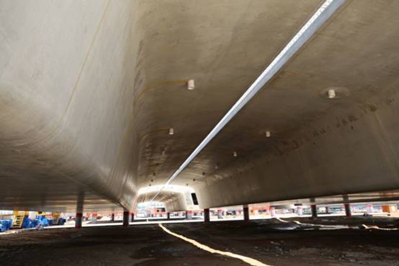 冬季,項目部給千斤頂“穿電熱毯”,給梁“蓋房子”、“搭暖棚”、“燒火炕”,防止“梁感冒”。通過雙層沙倉保溫,給12個料倉,近7000平米的料庫安裝暖氣。制作了一個40米長,20米寬的移動保溫棚,把整個梁體和布料機都包裹在里面,再加上4個暖風炮,使制梁溫度保持在10℃以上,有效保障了冬季零下20度的情況下箱梁預制質量穩定、進度不減。