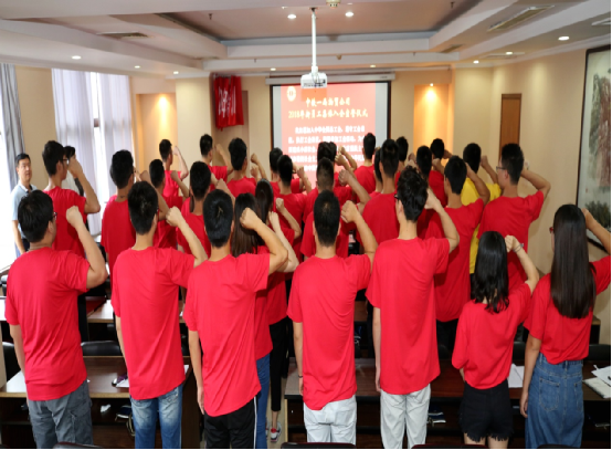 7月11日,公司34名新入職員工穿著紅色的體恤衫,在工會組織下舉行了集體入會儀式。大家面對工會會徽,隨著領誓人的帶領,共同舉起右手莊嚴宣誓,鄭重承諾,使新加盟員工實現“入職”即“入會”。